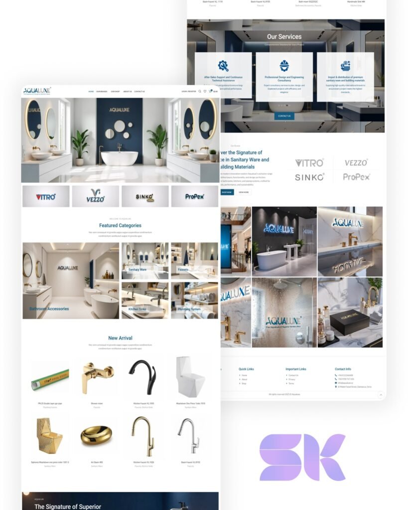 A modern, elegant, and fully custom WordPress build showcasing premium sanitaryware and building-material brands with a refined visual identity.