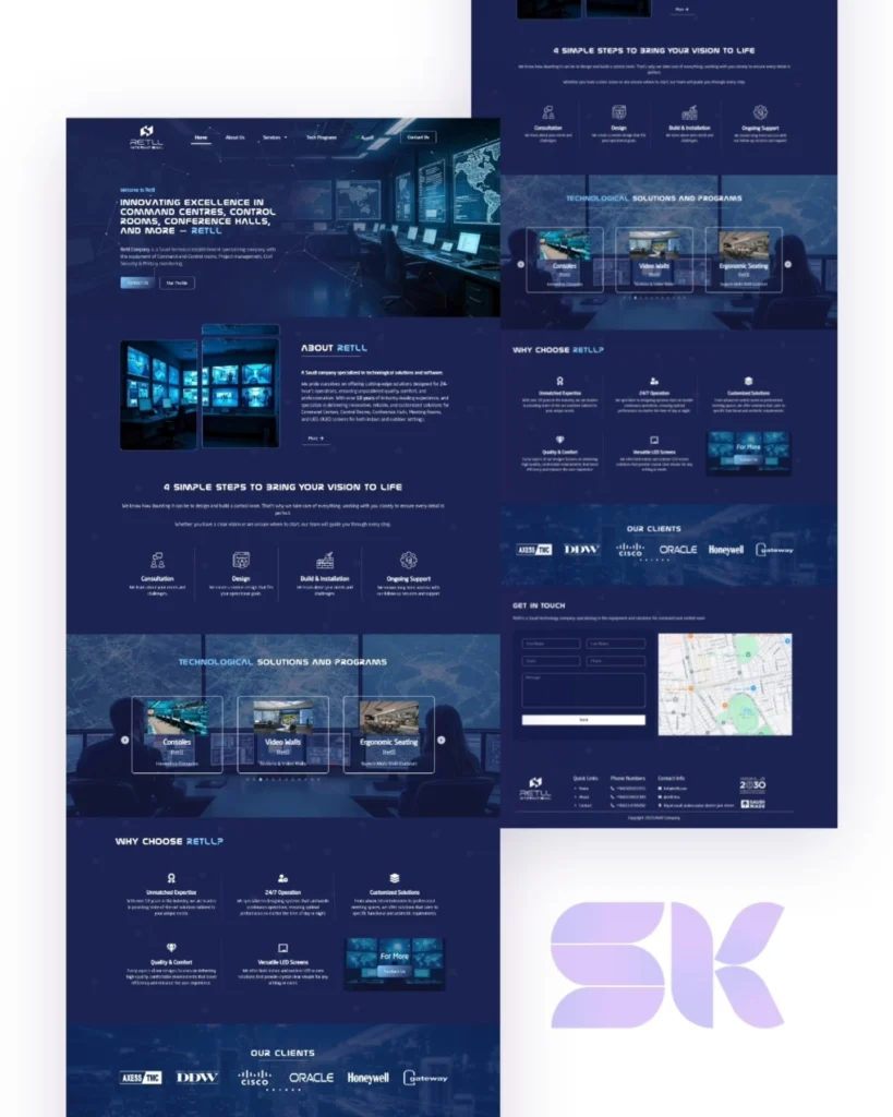 We began with a full UI/UX design on Figma, focusing on creating a clean and modern interface that reflects the company’s high-tech identity and the professional nature of its solutions. The visual direction was built around clarity, precision, and a structured layout that aligns with the brand profile and the advanced technologies RETLL provides.